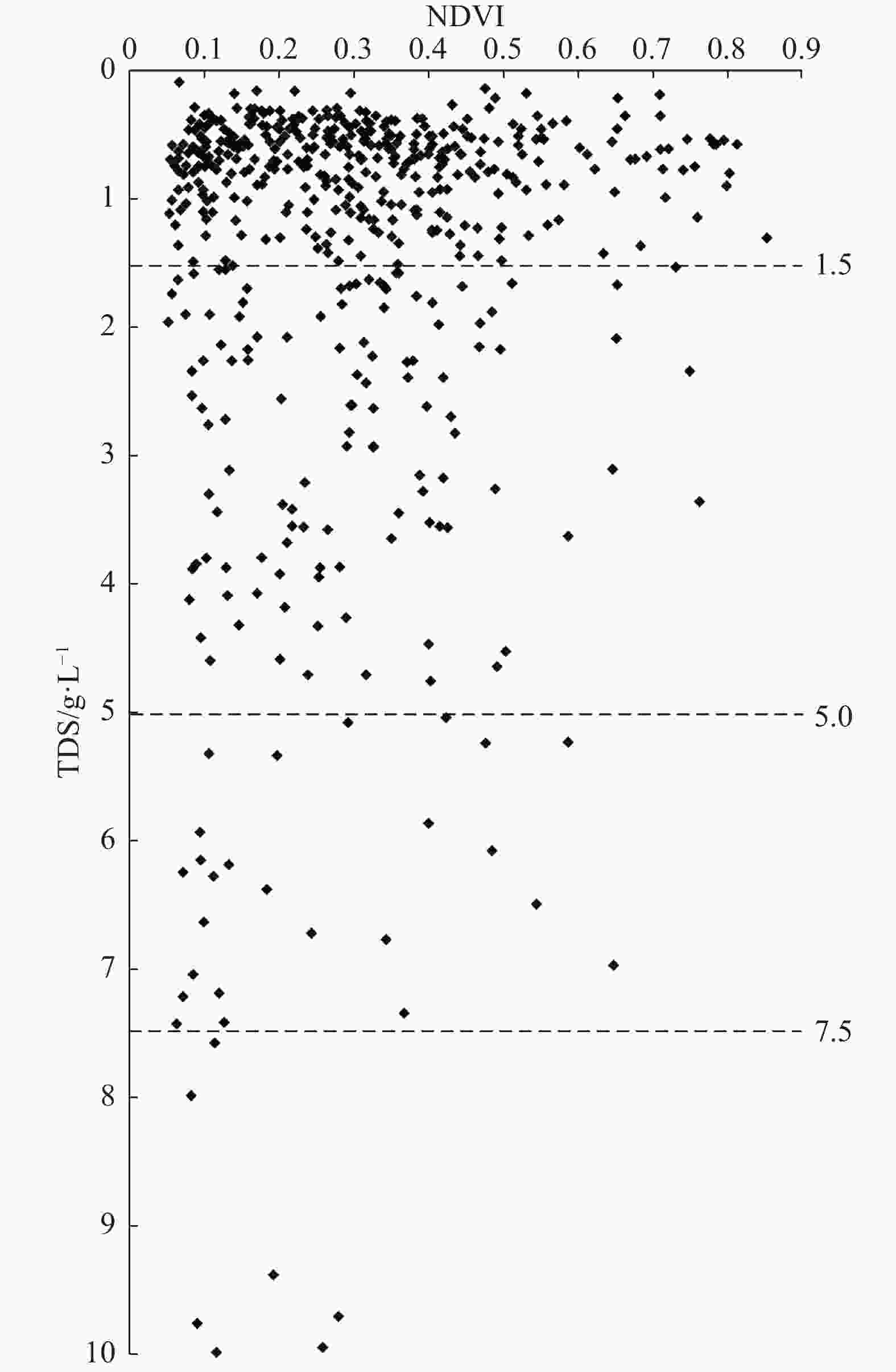 Abstract: To accurately evaluate ecological risks trigged by groundwater exploitation, it must be clarified the relationship between vegetation and groundwater. Based on remote sensing data sets MOD13Q1, groundwater table depth (WTD) and total dissolved solids (TDS), the relationship between groundwater and natural vegetation was analyzed statistically in the main plain areas of Qaidam Basin. The results indicate that natural vegetation is groundwater-dependent in areas where WTD is less than 5.5 m and TDS is less than 7.5 g/L. Aquatic vegetation, hygrophytic vegetation and hygrophytic saline-alkali tolerant vegetation are mainly distributed in areas with WTD <1.1 m. Salt-tolerant and mesophytic vegetation mainly occur in areas with WTD of 1.4-3.5 m, while the xerophytic vegetation isprimarily present in areas where WTD ranges from 1.4 m to 5.5 m. Natural vegetation does not necessarily depend on groundwater in areas with WTD >5.5 m. For natural vegetation, the most suitable water TDS is less than 1.5 g/L, the moderately suitable TDS is 1.5-5.0 g/L, the basically suitable TDS is 5.0-7.5 g/L, and the unsuitable TDS is more than 7.5 g/L.