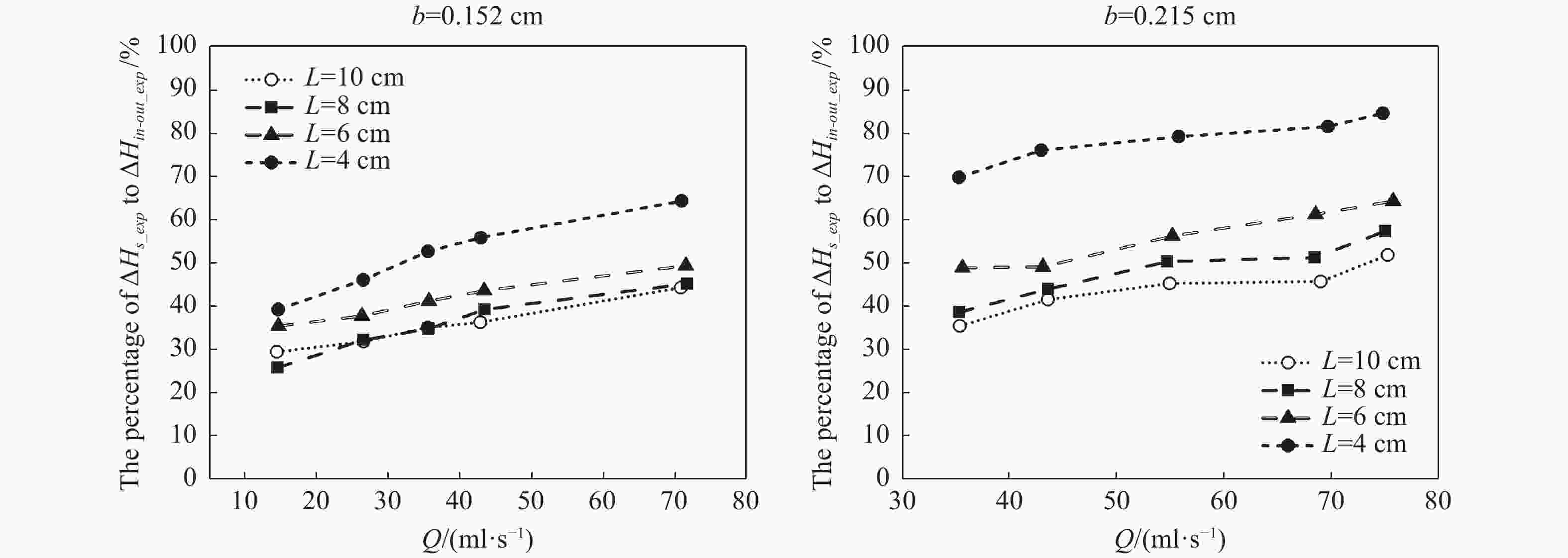 $ {\Delta \mathit{H}}_{\mathit{i}\mathit{n}-\mathit{o}\mathit{u}\mathit{t}\_\mathit{e}\mathit{x}\mathit{p}} $ and$ \Delta {\mathit{H}}_{\mathit{p}1-2\_\mathit{e}\mathit{x}\mathit{p}} $ along with the percentage of$ \Delta {\mathit{H}}_{\mathit{s}\_\mathit{e}\mathit{x}\mathit{p}} $ to$ \Delta {\mathit{H}}_{\mathit{i}\mathit{n}-\mathit{o}\mathit{u}\mathit{t}\_\mathit{e}\mathit{x}\mathit{p}} $ b=0.152 cm b=0.215 cm Q