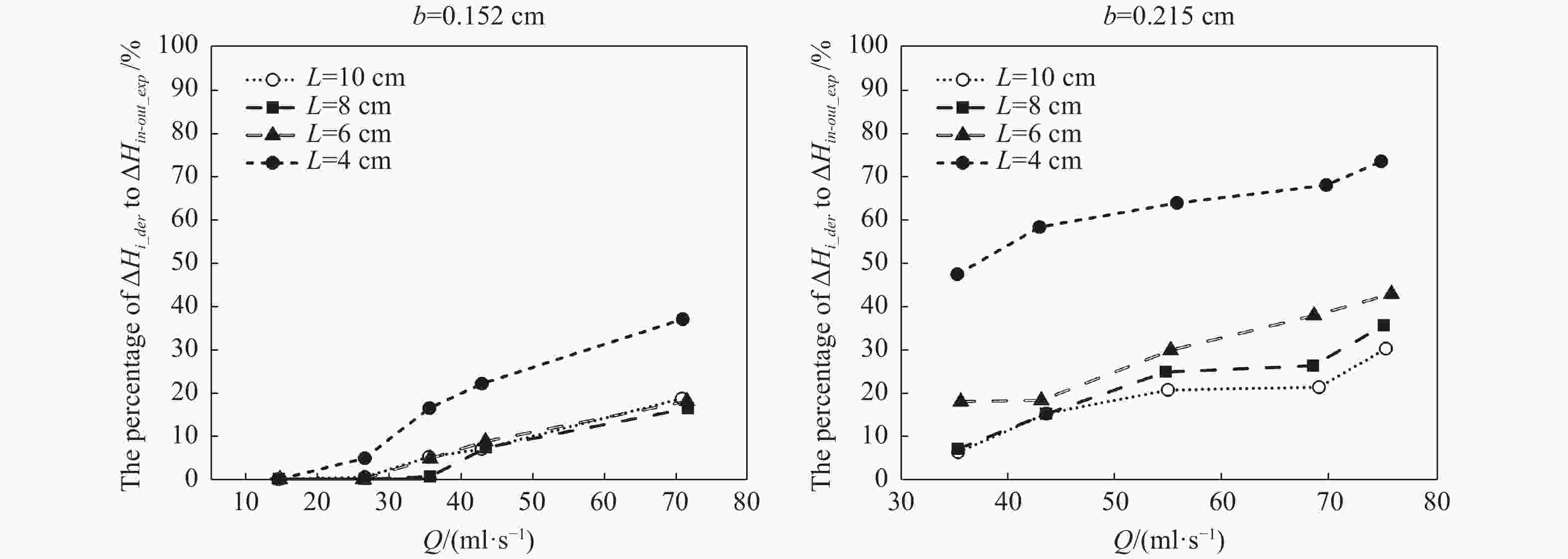$ {\Delta \mathit{H}}_{\mathit{i}\mathit{n}-\mathit{o}\mathit{u}\mathit{t}\_\mathit{d}\mathit{e}\mathit{r}} $ and the ratios of$ \Delta {\mathit{H}}_{\mathit{i}\_\mathit{d}\mathit{e}\mathit{r}} $ to$ \Delta {\mathit{H}}_{\mathit{i}\mathit{n}-\mathit{o}\mathit{u}\mathit{t}\_\mathit{e}\mathit{x}\mathit{p}} $ b=0.152 cm b=0.215 cm Q
