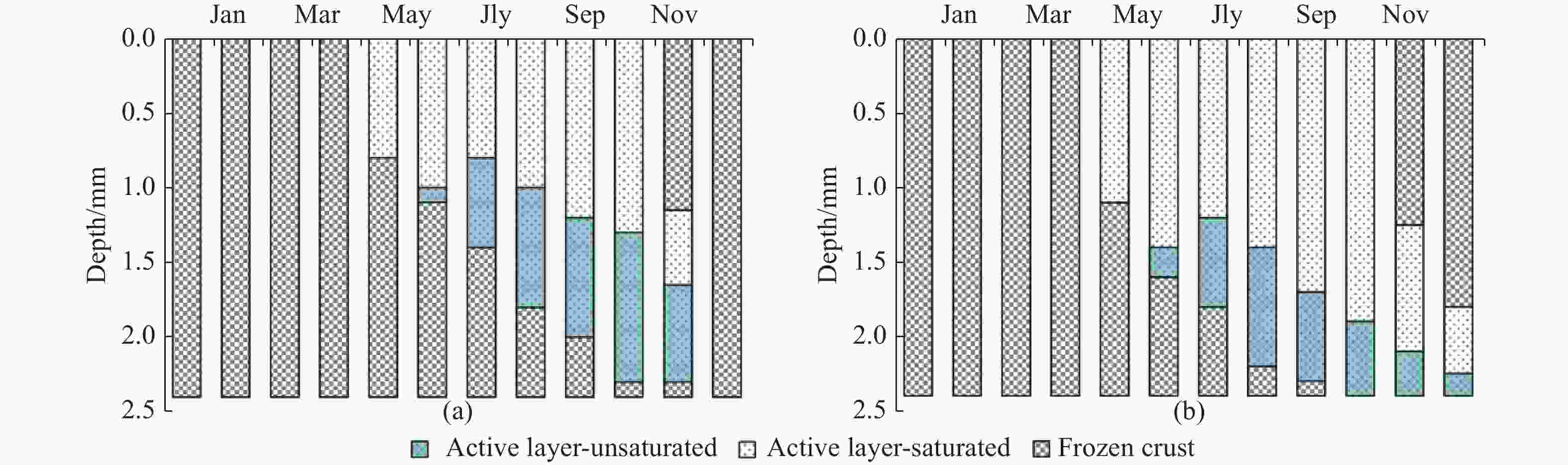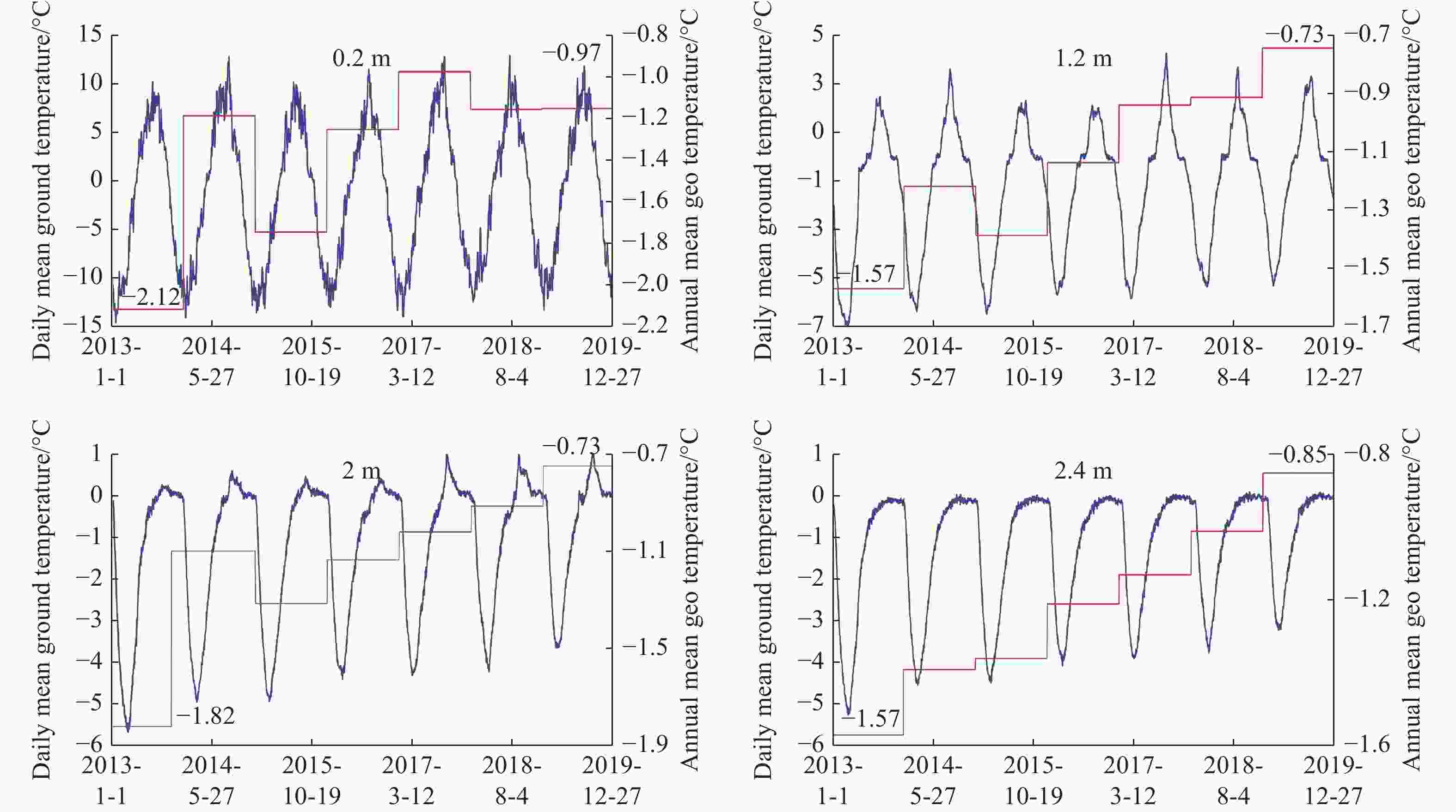 Table 1. Variations in annual thawing days of monitoring sections at different depths