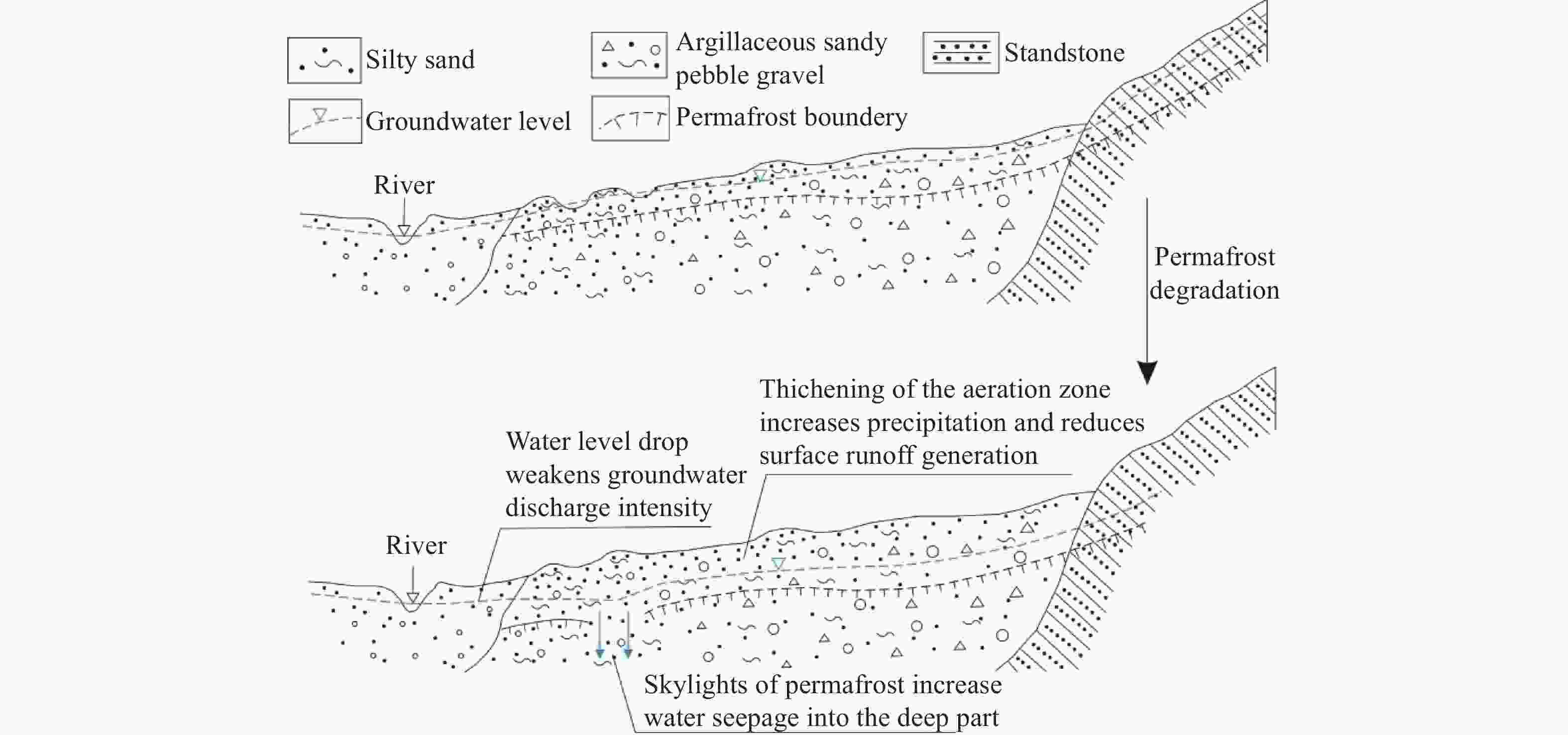 Bai YL, Wang F, Liu Y. 2021. Quantitative analysis of runoff evolution and driving factors in the upper reaches of Datong River. South-to-North Water Transfers and Water Science & Technology, 19(1): 103−110. (in Chinese) doi: 10.13476/j.cnki.nsbdqk.2021.0010 Cao W, Sheng Y, Wu JC, et al. 2021. Soil hydrological process and migration mode influenced by the freeze-thaw process in the activity layer of permafrost regions in Qinghai-Tibet Plateau. Cold Regions Science & Technology, 184: 103236. doi: 10.1016/j.coldregions.2021.103236 Czerniawska J, Chlachula J. 2020. Climate-change induced permafrost degradation in Yakutia, East Siberia. Arctic, 73(4): 509−528. doi: 10.14430/arctic71674 Dai JC, Wang GX, Song CL, et al. 2018. Study on the law of runoff retreat in the Three-river headwaters rgion. Resources and Environment in the Yangtze River, 27(6): 1342-1350. (in Chinese) Frampton A, Painter SL, Destouni G. 2013. Permafrost degradation and subsurface-flow changes caused by surface warming trends. Hydrogeology Journal, 21(1): 271−280. doi: 10.1007/s10040-012-0938-z Gao ZY, Niu FJ, Lin ZJ. 2020. Effects of permafrost degradation on thermokarst lake hydrochemistry in the Qinghai-Tibet Plateau, China. Hydrological Processes, 34(26): 5659−5673. doi: 10.1002/hyp.13987 Han SB, Li FC, Wang S, et al. 2021. Groundwater resource and eco-environmental problem of the Yellow River Basin. Geology in China, 48(4): 1001−1019. (in Chinese) Jin HJ, He RX, Cheng GD, et al. 2009. Changes in frozen ground in the source area of the Yellow River on the Qinghai-Tibet Plateau, China, and their eco-environmental impacts. Environmental Research Letters, 4(4): 045206. doi: 10.1088/1748-9326/4/4/045206 Li WZ, Liu W, Zhang TF, et al. 2018. The contribution rate of climate and human activities on runoff change in the source regions of Yellow River. Journal of Glaciology and Geocryology, 40(5): 958−992. (in Chinese) doi: 10.7522/j.issn.1000-0240.2018.0312 Li ZJ, Li ZX, Song LL, et al. 2020. Characteristic and factors of stable isotope in precipitation in the source region of the Yangtze River. Agricultural and Forest Meteorology, 281: 107825. doi: 10.1016/j.agrformet.2019.107825 Liu BK, Li L, Du YE, et al. 2016. Causes of the outburst of Zonag Lake in Hoh Xil, Tibetan Plateau, and its impact on surrounding environment. Journal of Glaciology and Geocryology, 38(2): 305−311. (in Chinese) doi: 10.7522/j.issn.1000-0240.2016.0033 Lu ZX, Feng Q, Zou SB, et al. 2020. The heterogeneity of hydrometeorological changes during the period of 1961-2016 in the source region of the Yellow River, China. Sciences in Cold and Arid Regions, 12(2): 104−118. Ma Q, Jin HJ, Victor F B, et al. 2019. Impacts of degrading permafrost on streamflow in the source area of Yellow River on the Qinghai-Tibet Plateau, China. Advances in Climate Change Research, 10(4): 225−239. doi: 10.1016/j.accre.2020.02.001 Oliva M, Pereira P, Antoniades D. 2018. The environmental consequences of permafrost degradation in a changing climate. Science of the Total Environment, 616-617(1): 435−437. doi: 10.1016/j.scitotenv.2017.10.285 Qiao G, Yu FD, Wang WK, et al. 2022. Thermodynamic transport mechanism of water freezing-thawing in the vadose zone in the alpine meadow of the Tibet Plateau. Journal of Groundwater Science and Engineering, 10(3): 302−310. doi: 10.19637/j.cnki.2305-7068.2022.03.008 Shen HY, Li J, Wang ZH, et al. 2022. Water resources utilization and eco-environment problem of Fenhe River, branch of Yellow river. Geology in China, 49(4): 1127−1138. (in Chinese) Sheng Y, Ma S, Cao W, et al. 2020. Spatiotemporal changes of permafrost in the Headwater Area of the Yellow River under a changing climate. Land Degradation & Development, 31(1): 133−152. doi: 10.1002/ldr.3434 Song CL, Wang GX, Mao TX, et al. 2020. Linkage between permafrost distribution and river runoff changes across the Arctic and the Tibetan Plateau. Science China Earth Sciences, 63(2): 292−302. doi: 10.1007/s11430-018-9383-6 Sun YS, Liu T, Li Y. 2021. Analysis on the consistency of precipitation and runoff in the source area of the Yellow River and its influencing factors. Yellow River, 43(10): 51−55,101. (in Chinese) Wan CW, Gibson JJ, Shen SC, et al. 2019. Using stable isotopes paired with tritium analysis to assess thermokarst lake water balances in the source area of the Yellow River, northeastern Qinghai-Tibet Plateau, China. Science of the Total Environment, 689: 1276−1292. doi: 10.1016/j.scitotenv.2019.06.427 Wang GX, Mao TX, Chang J, et al. 2017. Processes of runoff generation operating during the spring and autumn seasons in a permafrost catchment on semi-arid plateaus. Journal of Hydrology, 550: 307−317. doi: 10.1016/j.jhydrol.2017.05.020 Walvoord MA, Voss CI, Wellman TP. 2012. Influence of permafrost distribution on groundwater flow in the context of climate-driven permafrost thaw: Example from Yukon Flats Basin, Alaska, United States. Water Resources Research, 48(7): 1−17. doi: 10.1029/2011WR011595 Wang DX, Tian SM, Jiang SQ, et al. 2020. Research progress of the evolution of runoff in the source area of the Yellow River. Yellow River, 42(9): 90−95. (in Chinese) Wang Y, Chen RS, Xia ZL, et al. 2020. The evaluation of ecosystem service value and its spatial change in the Yellow River Basin and suggestions from the ecological geology perspectives. Geological Bulletin of China, 39(10): 1650−1662. (in Chinese) Wu AM, Hao AB, Guo HP, et al. 2020. Main progress and prospect for China’s hydrogeological survey. Journal of Groundwater Science and Engineering, 8(3): 195−209. Xu R, Hu HC, Tian FQ, et al. 2019. Projected climate change impacts on future streamflow of the Yarlung Tsangpo-Brahmaputra River. Global & Planet Change, 175: 144−159. doi: 10.1016/j.gloplacha.2019.01.012 Yang YZ, Wu QB, Jin HJ, et al. 2019. Delineating the hydrological processes and hydraulic connectivities under permafrost degradation on Northeastern Qinghai-Tibet Plateau, China. 