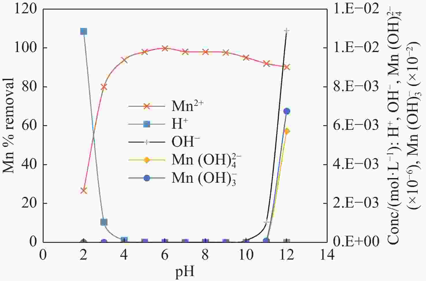 Figure  2.  Effect of initial solution pH on Mn2+ removal by BC