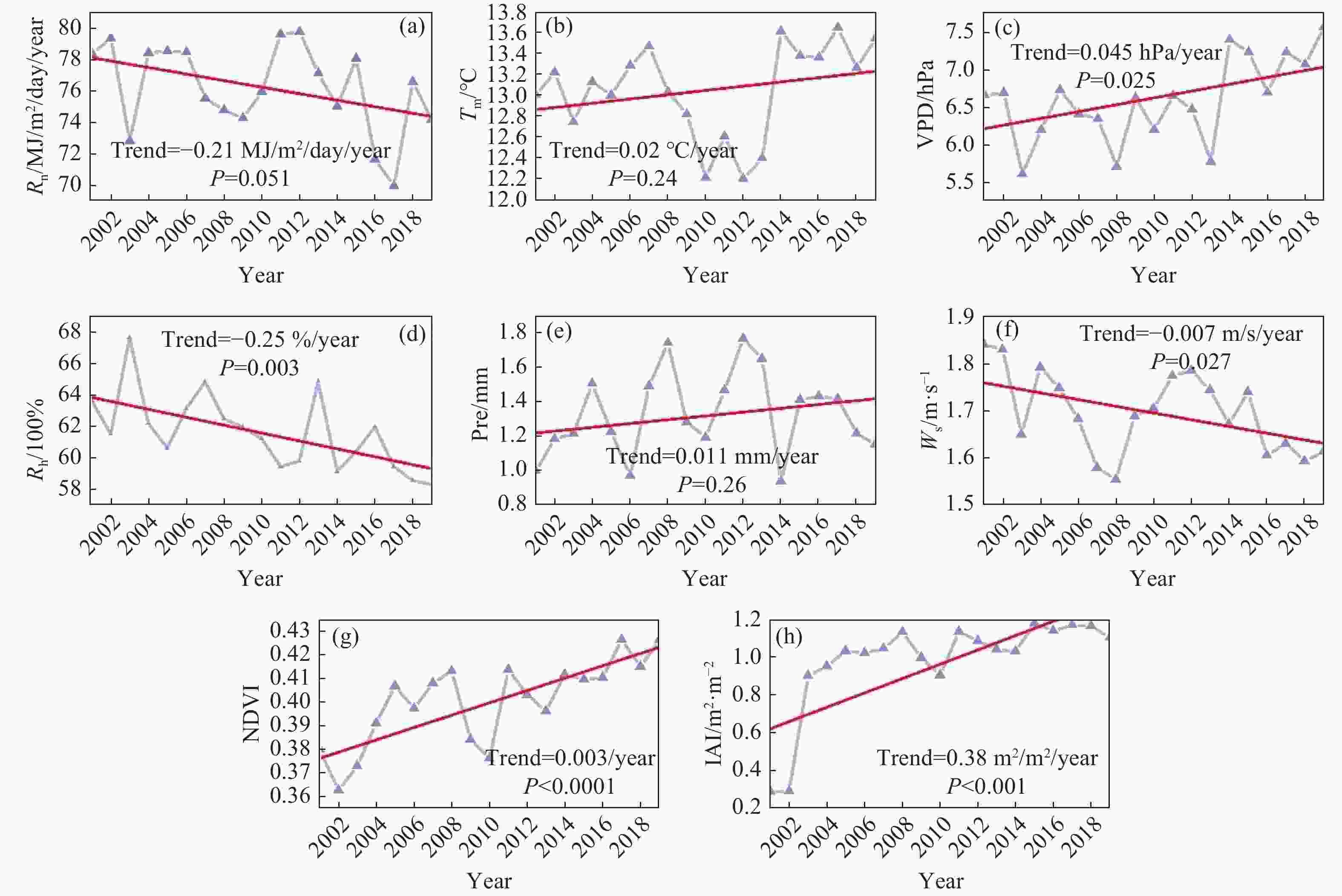 Type Dataset Time span Temporal resolution Spatial resolution Remote sensing datasets MCD12Q1 2000—2019 yearly 500 m MOD13Q1 2000—2019 16-day 250 m MOD15A2 2000—2019 8-day 500 m SRTMv4.1 2008 yearly 90 m Reanalysis dataset GLDAS 2.1 2000—2019 3-hour 0.25° Table 3. Validation of regional interpolation datasets using flux site data.